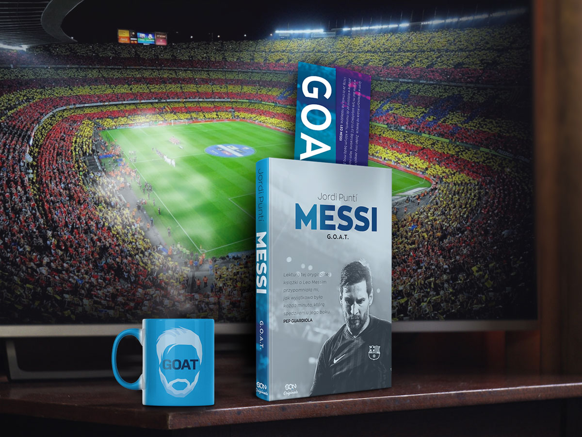3. Książka „Messi G.O.A.T” w pakiecie z kubkiem + zakładką