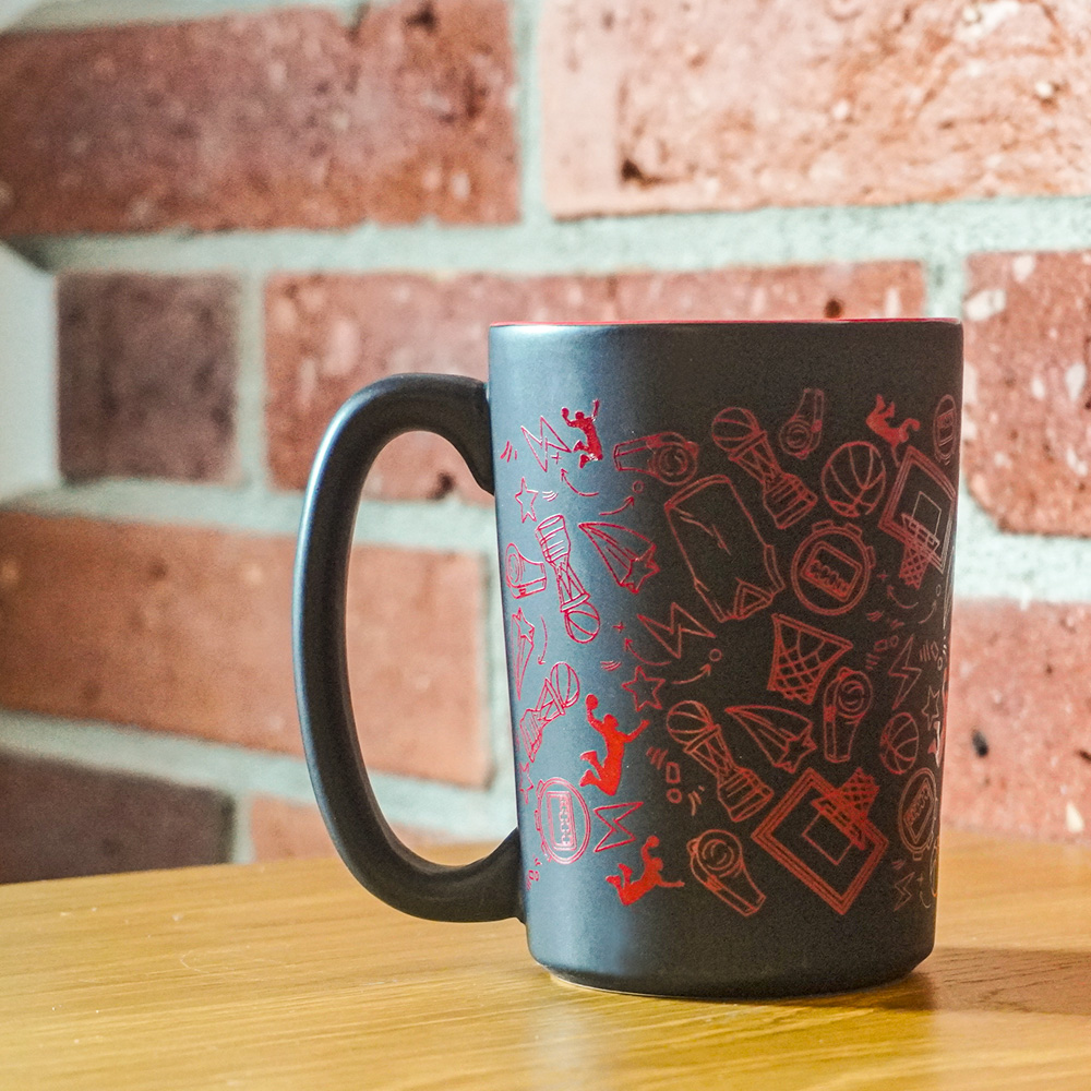 Pozostajemy w koszykarskim klimacie, by zaproponować unikalny kubek. Wysoki i solidny, niczym najlepsi gracze NBA, z dużym uchem, które z przyjemnością chwycisz, by na przykład wypić poranną kawę. A jakby tego było mało, ma jeszcze jedną zaletę. Został pięknie zaprojektowany, dzięki czemu wyróżnia się wśród innych kubków.